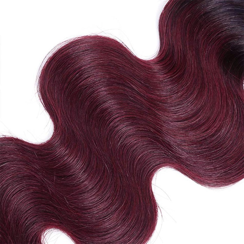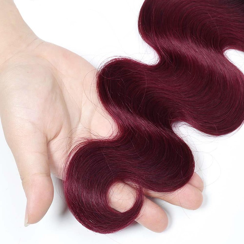 - Hair Color:1B99j Two Tone Black And Burgundy Ombre Body Wave Hair Bundles