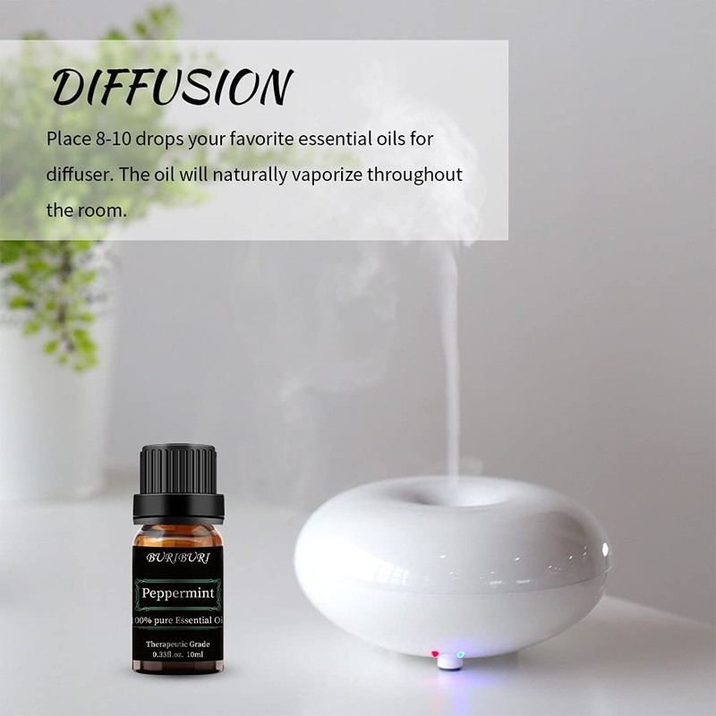 BURIBURI Peppermint Essential Oil, 100% Pure Natural Essential Oils for Aromatherapy, Diffuser, Massage, Soap Making