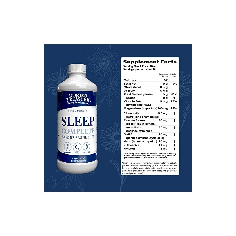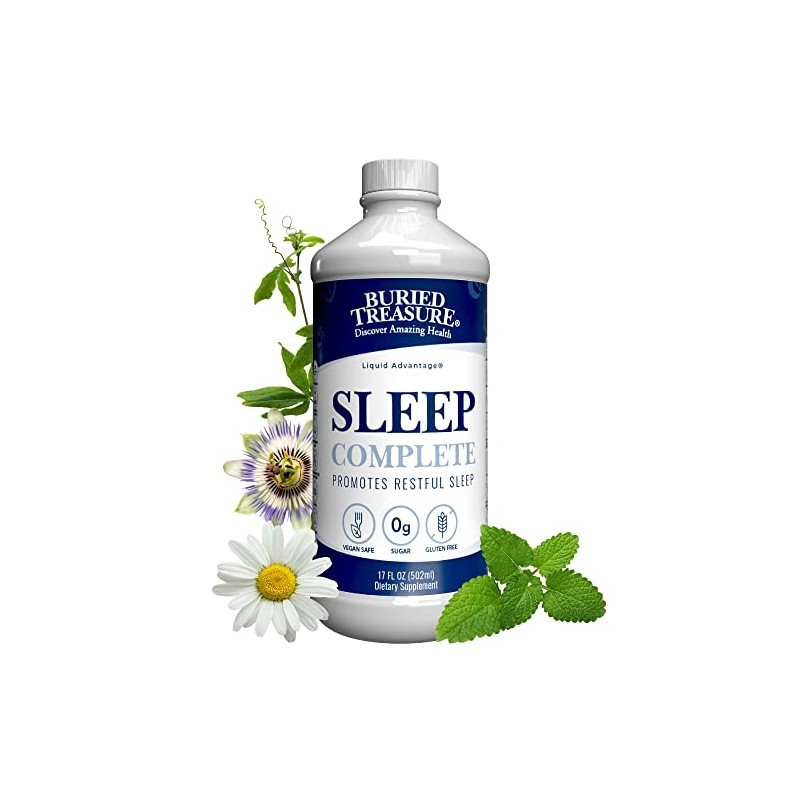 Buried Treasure Sleep Complete Promotes Restful Sleep with Chamomile Passion Flower Lemon Balm Melatonin Herbal Whole Food Complex 16 oz