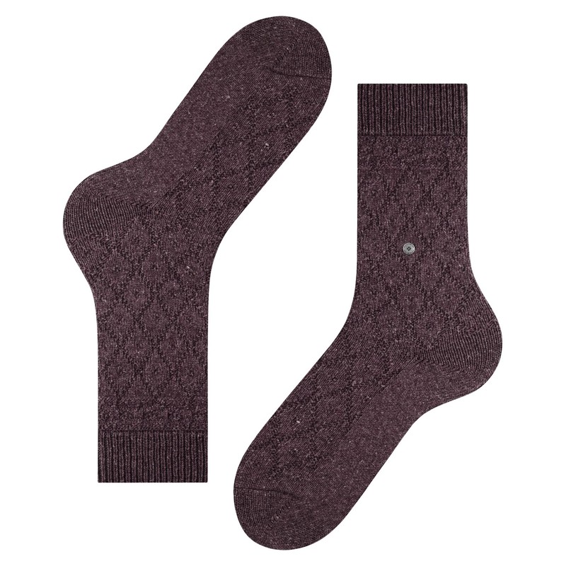 Burlington Argyle Boot Socks Wool, Red (Bordo Melange 8279)