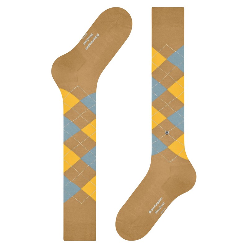 Burlington Men's Manchester M Kh Cotton Long Patterned Knee Socks, Yellow Mustard 1291