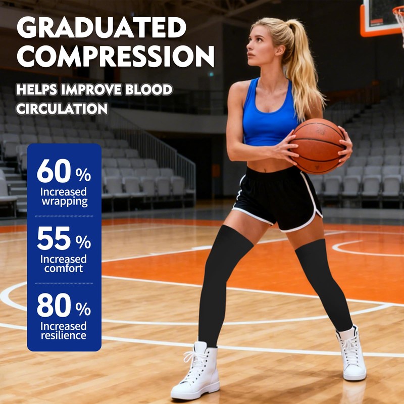 • GRADUATED COMPRESSION TECHNOLOGY: Thigh high compression stockings for women provide you moderate compression that is 15-20mmHg.it is designed will provide graduated compression from the heel to the upper leg.experience the perfect blend of comfort and support with our compression socks, featuring, grade graduated compression that helps improve blood circulation, minimize fatigue, and speed up recovery time.