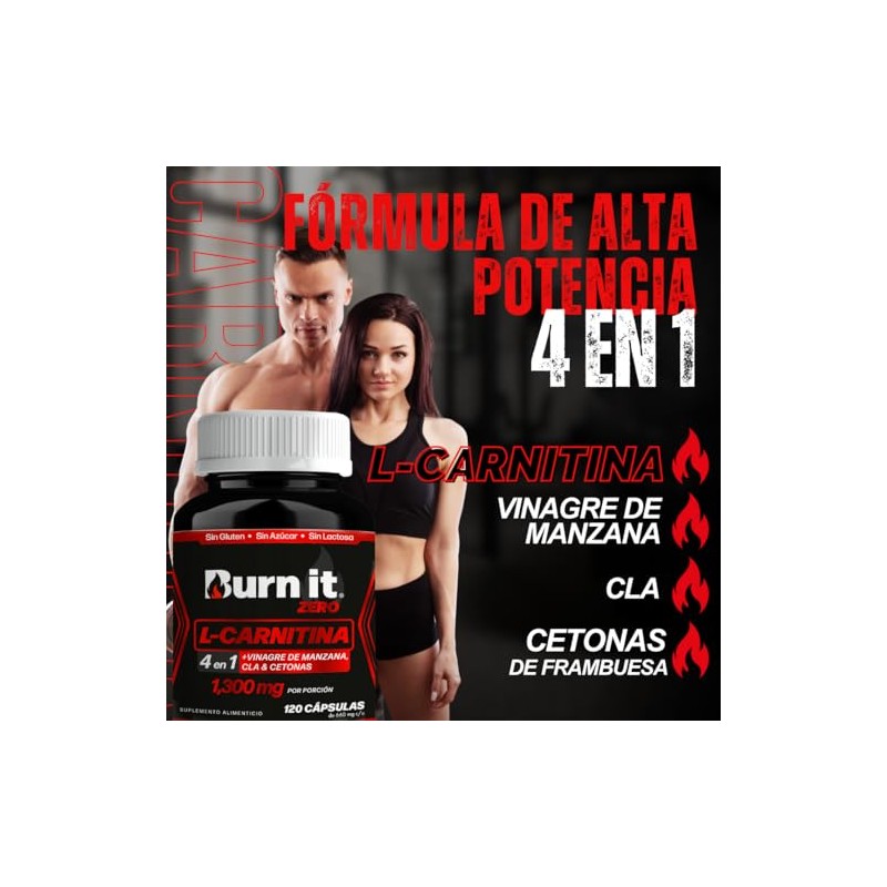 🌟 ⭐ Burn it Zero L Carnitina 1300mg 4en1 120 Caps | Carnitina, Vinagre de Sidra de Manzana, CLA, Cetonas | Termogenico Burn It Zero Suplemento Alimenticio ⭐ 🌟