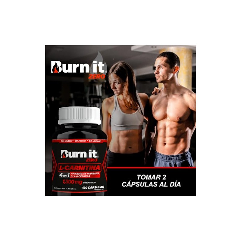 Burn it Zero L Carnitina 1300mg 4en1 120 Caps | Carnitina, Vinagre de Sidra de Manzana, CLA, Cetonas | Termogenico Burn It Zero Suplemento Alimenticio