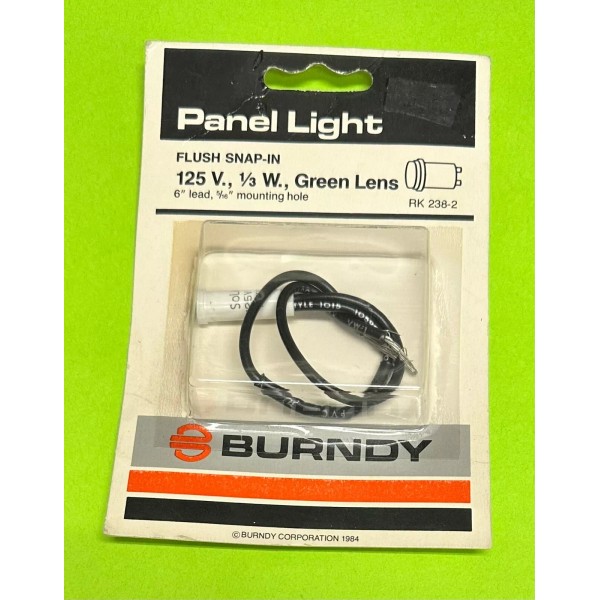 BURNDY RK238-2 RK2382 Snap-In GREEN Panel Light Round 125V 1/3W 6" Leads
