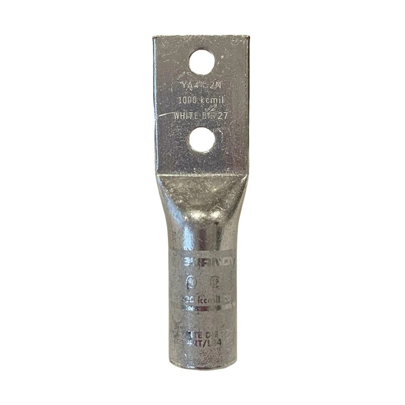 Burndy YA442N Compression Lug 1000 kcmil 2 Hole 1/2 Inch Stud Copper White