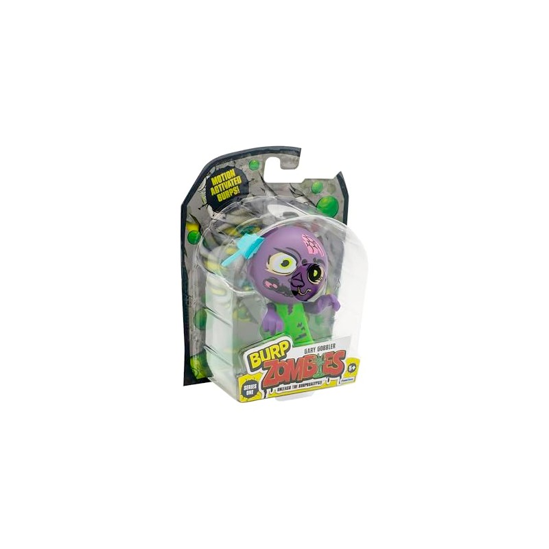 - Eight different Zombie characters – Series 1 contains eight different whimsical burps zombie figures, including Upchuck Chuck, Sir Belchalot, Professor Barfolomew, Squelchy Belchy, Burpster Billie, Gurgle N' Gutz,