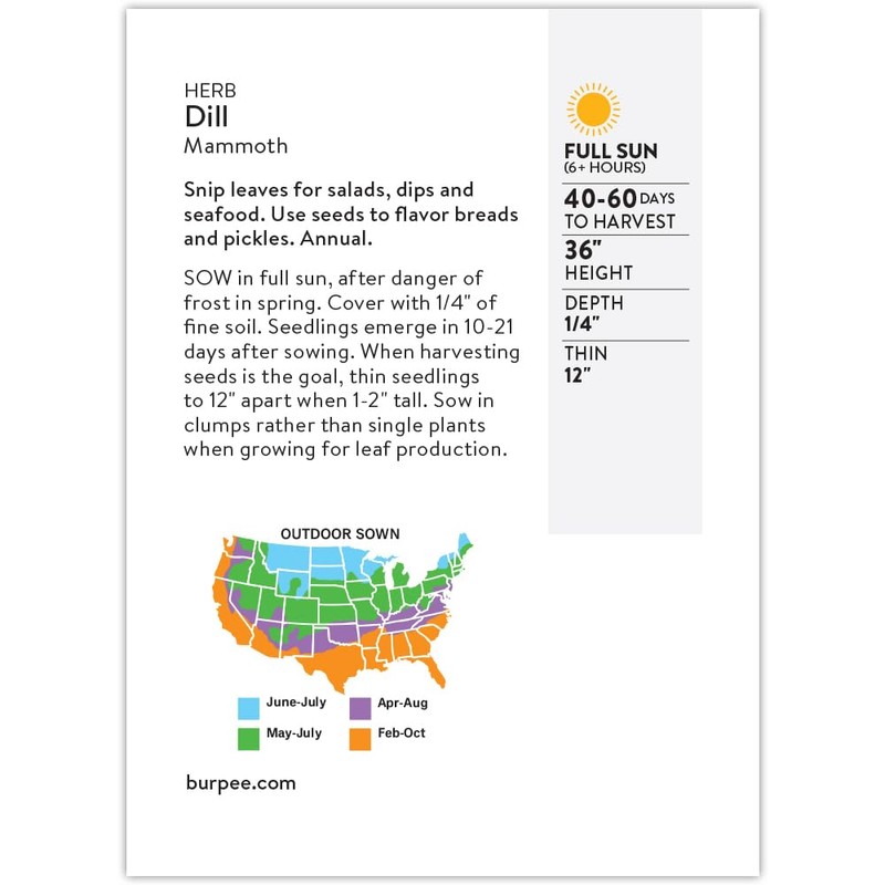 Burpee Dill Seeds, 1.8g Non-GMO Herb Seeds for Planting