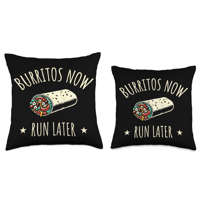 Burritos Now Run Later Funny Food Quote Throw Pillow