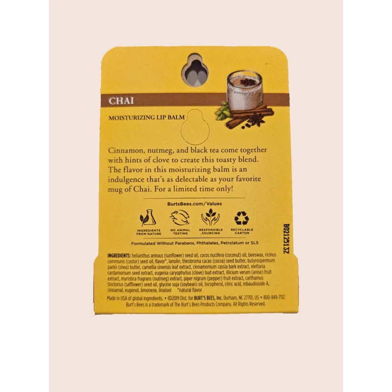 Burt's Bees 2 Pack Burt's Bees Chai Limited Edition moisturizing Lip Balm New *Free Shipping