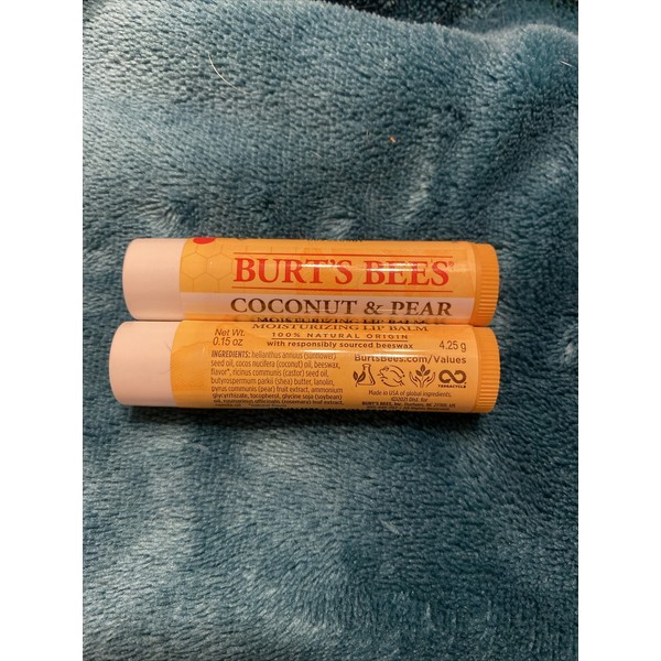 2PK Burt’s Bees COCONUT & PEAR Moisturizing Lip Balm 100% Natural Origin with responsibly sourced beeswax. Cruelty Free.