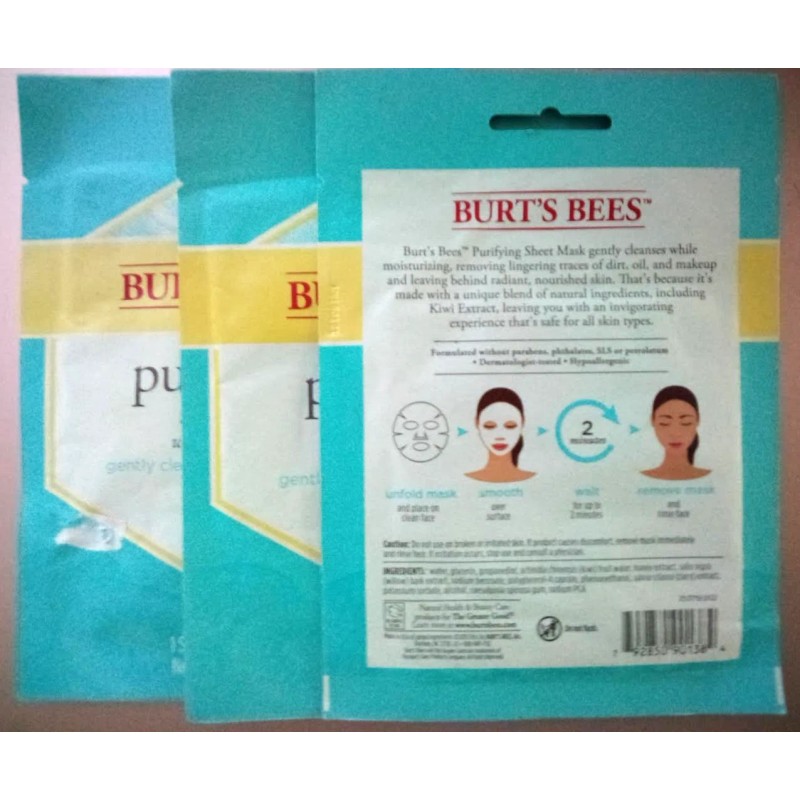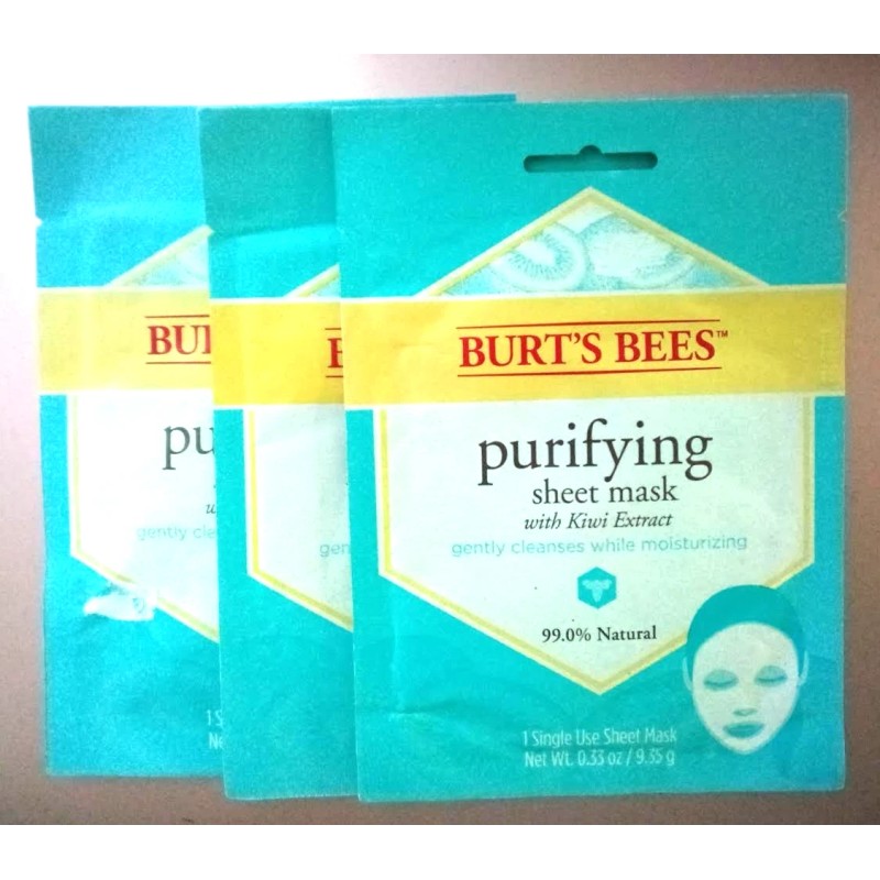 Burt's Bees 3-PACK Burt's Bees Purifying Sheet Mask w/Kiwi Extract Cleanse & Moisturize NEW