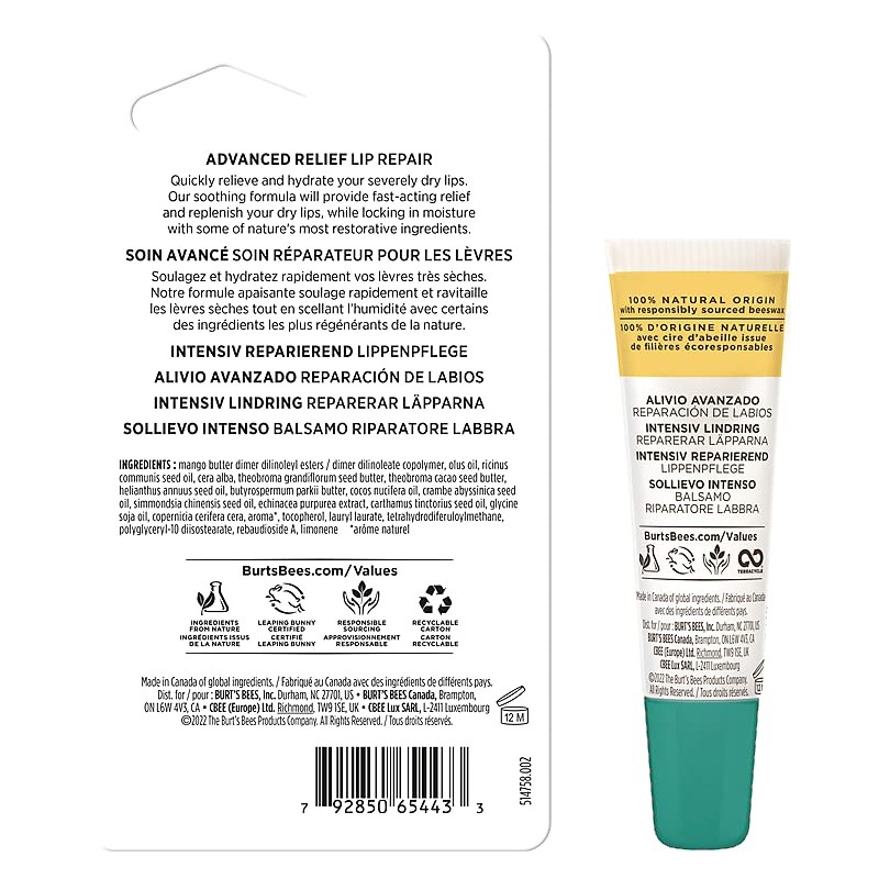 Burt’s Bees® Advanced Lip Relief with Shea Butter and Echinacea, 100% Natural Origin, 9.92 g