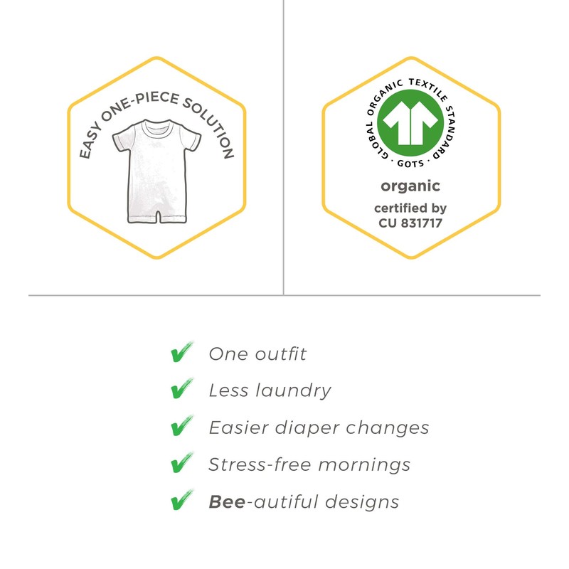 - One piece outfits make changes hassle-free, easier morning, and help cut back on laundry and diaper bag packing