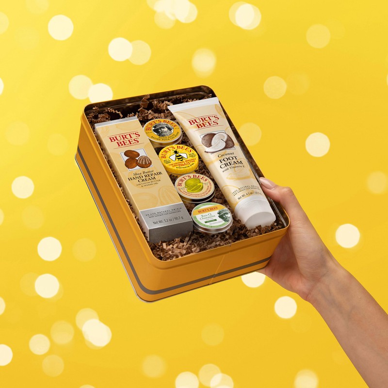 - BURTS BEES GIFT SET: These natural, moisturizing skin care products gifted in a Burt’s Bees tin nourish skin throughout the winter months and make the perfect holiday stocking stuffer.