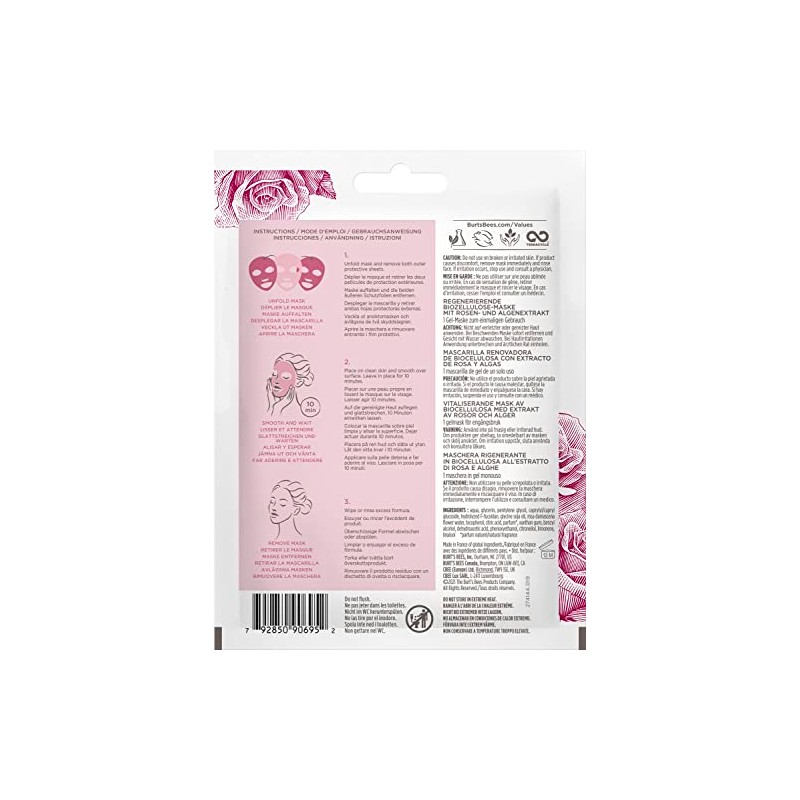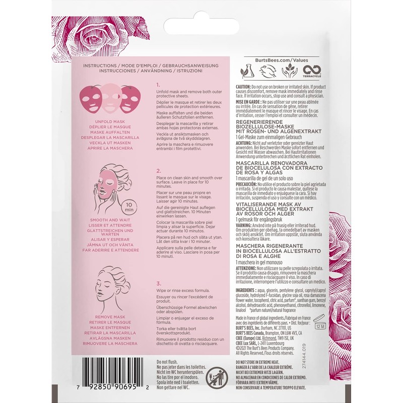 - SINGLE USE SHEET MASK: Replenish your skin with Burt's Bees Renewing Biocellulose Gel Mask, featuring anti-aging Rose & Algae Extract to moisturize and help smooth the skin