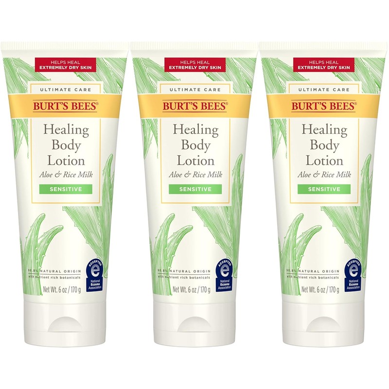 Burt's Bees Ultimate Care Healing Body Lotion with Aloe and Rice Milk for Sensitive Skin, 98.8% Natural Origin, 6 Ounc