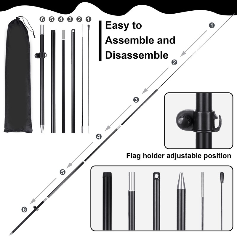 - Easy to Assembly and Disassembly: the fiberglass and aluminum flag pole kit is engineered for quick and easy setup and takedown, allowing you to efficiently deploy your business display and seamlessly transition between locations without hassle; All you need to do is put the pieces together and insert the flag into the stakes placed at the bottom of the ground or other support, no technical skills or tools required