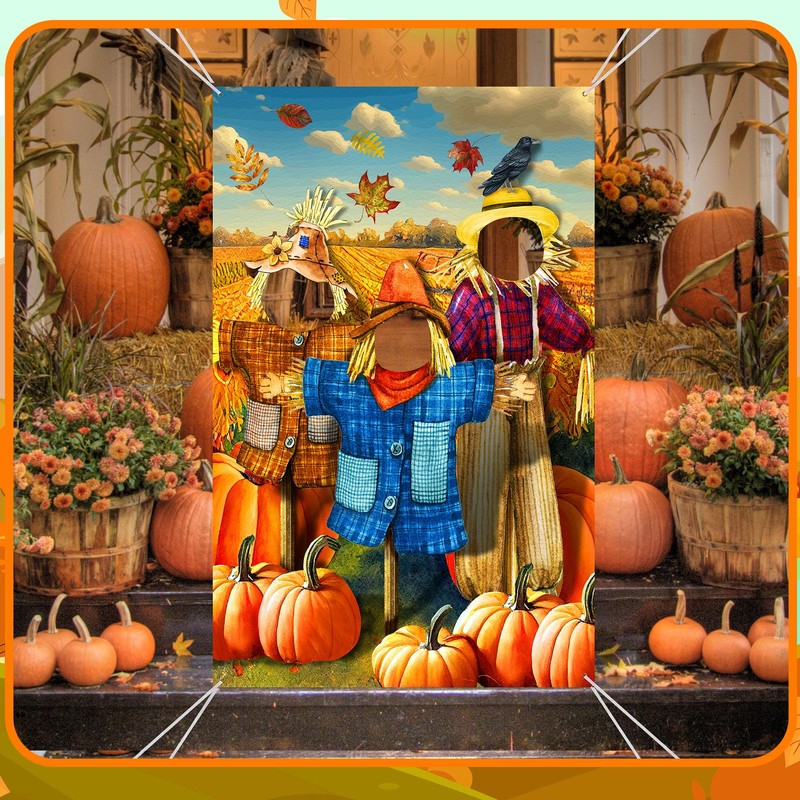 Buryeah Thanksgiving Photography Backdrop Scarecrow Pumpkin Photo Background Fall Backdrops for Photography Autumn Party Photo Props with Head Cutout Fall Festival Banner with 10 Meter Rope 73 x 47''