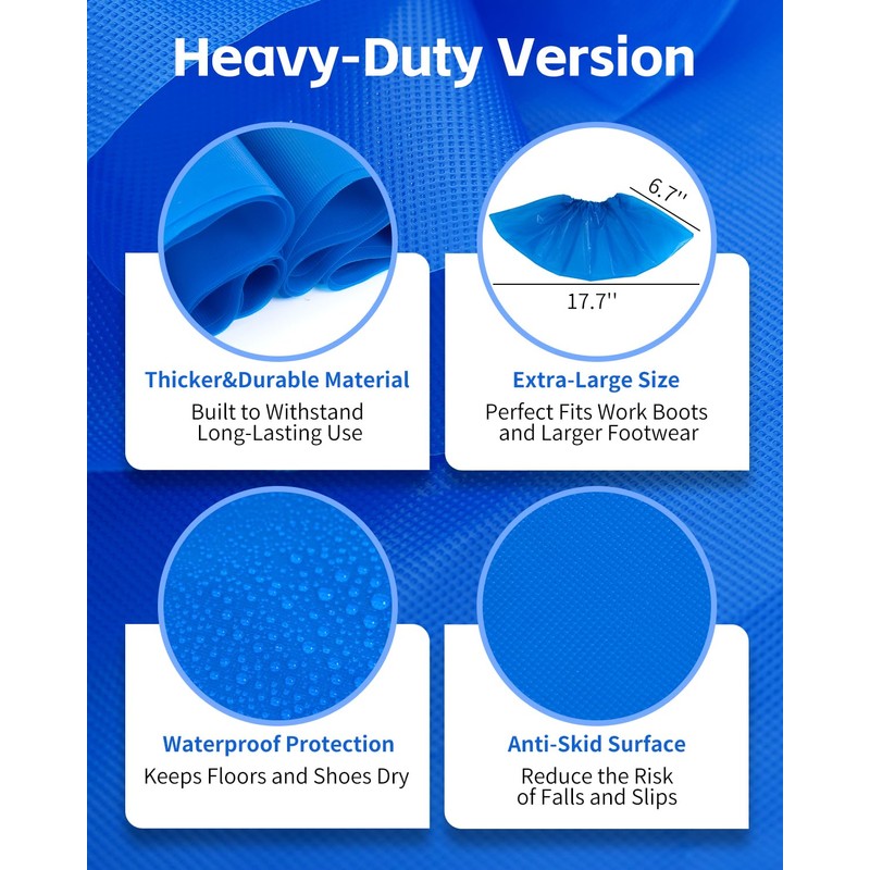 - Durable & Oversized Shoe Covers Disposable – Upgraded to 6.7*17.7 in/17x45 cm and 0.3 Oz/8.5g per cover, these heavy-duty booties for shoes covers provide robust protection for larger shoes, ideal for construction, real estate, and healthcare industries