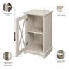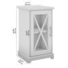 The Bush Furniture Lennox Small Farmhouse End Table with Storage boasts a practical design to help keep your living room in order while conveying a natural, easy-going charm. This side table's surface has a weight capacity of 50 pounds to support a lamp, plant, or decorations to give your space a personal touch. A cabinet with a tempered glass door and X pattern accent opens to reveal one adjustable shelf to accommodate reading materials, remote controls, and other living room essentials of various shapes and sizes. The adjustable shelf supports up to 25 pounds, so you can store books and larger materials with confidence. The small accent table is a perfect complement to the Lennox Farmhouse Coffee Table (sold separately) for a cohesive living room table set, but it also works well in a home office, entryway, or any other residential space. The Lennox Collection's intentionally distressed finish and hardware reflect the best elements of coastal and farmhouse styling to fit perfectly in homes that embrace a more relaxed vibe. This end table for living room has been meticulously tested to meet or exceed industry standards for safety, durability, and performance and is backed by the Bush Furniture 1 Year Manufacturer's Warranty. Build your ideal living space with coordinating items from the Lennox Collection, including home office desks, file and storage cabinets, bookcases, TV stands, and more.
