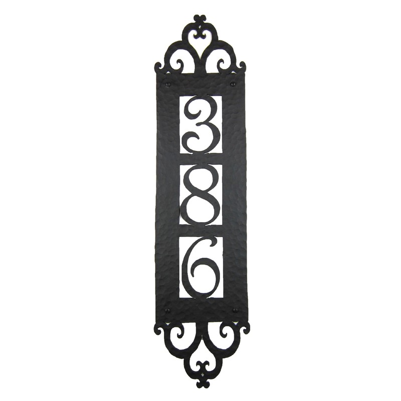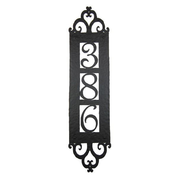 Bushere and Son Spanish Mediterranean Custom Hammered Vertical Wrought Iron Address Plaque APV13 (Black)