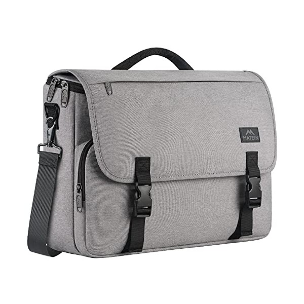 Business Briefcase for Men, Durable Water Resistant Laptop Bag with Shoulder Strap for College School Student, Lightweight Crossbody Work Computer Messenger Bags for Boys Fits 15.6 inch Notebook, Gray