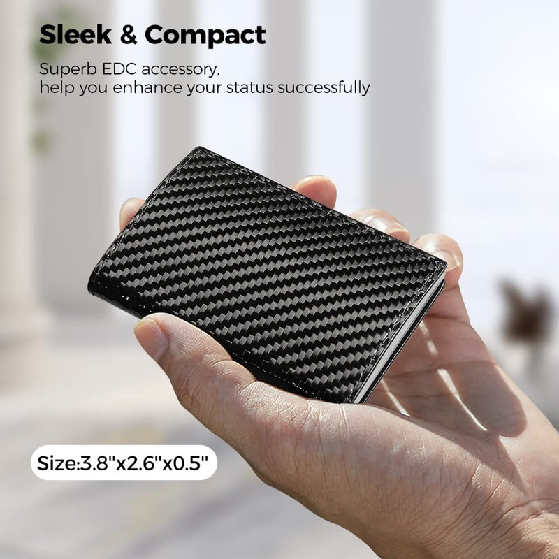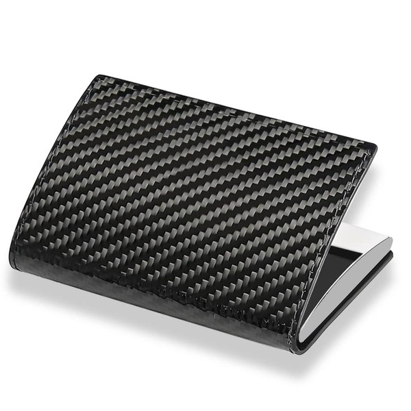 Business Card Holder MONOCARBON Real Carbon Fiber Business Card Case with Magnetic Flip Fashion Business Card Wallet for Men Lightweight and Portable - Matte