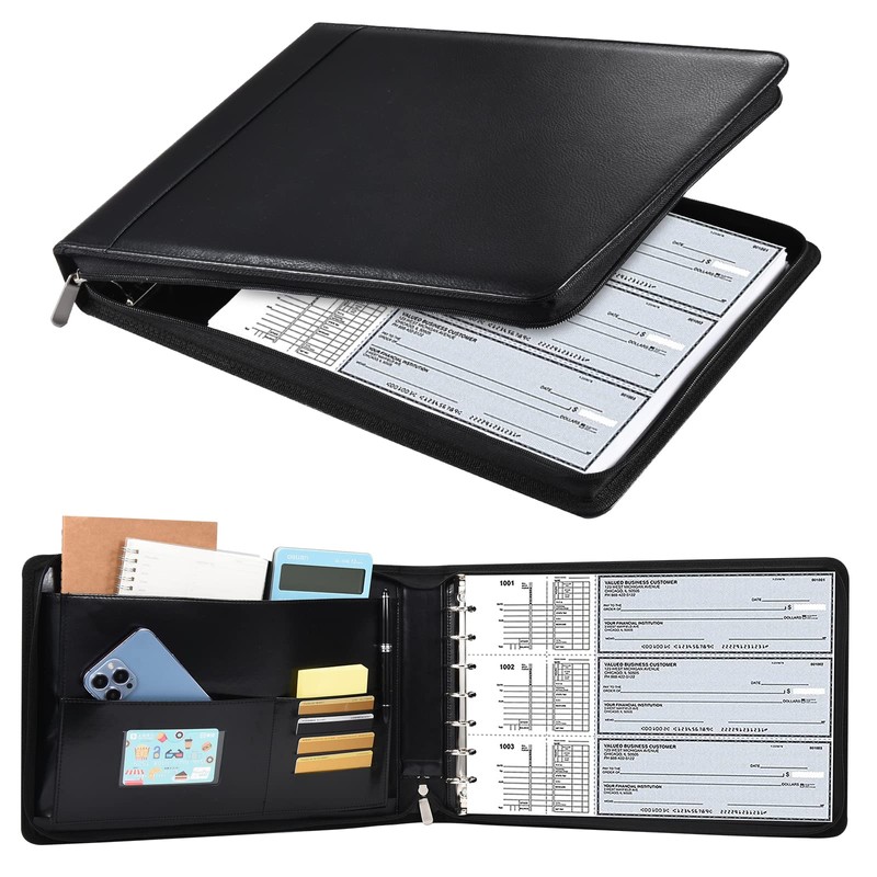 • WELL CONSTRUCTION: Fit 3 to 1 page business check and ledgers. Hold up to 200 sheets 9" x 13" check (600 checks max). Easy to open flat and write your checks.