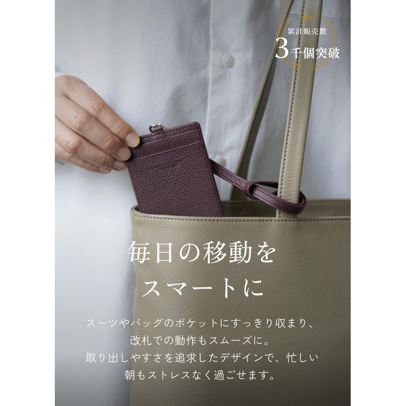 Business Leather Factory Pass Case, Genuine Leather, Commuter Pass Case, IC Card Case, Thin, Strap, Men's, Women's, prussian navy
