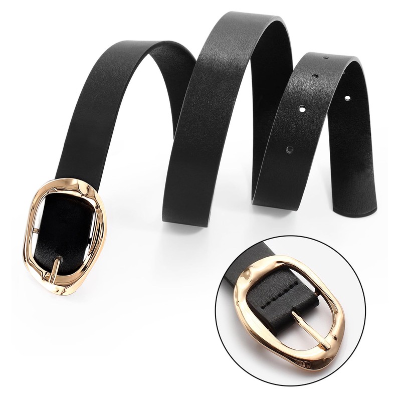 - Golden Buckle Belt: The women's fashionable belt adopts a unique liquid-shaped buckle, adds a fashionable touch while maintaining stability. The black belts for women is suitable for women to match various styles, you are dressing up for special occasions or keeping casual, this black belt is a satisfying choice.