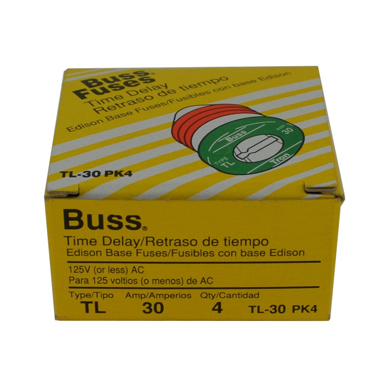 Bussman TL-30PK4 30 Amp TL Edison Plug Time Delay Fuse 4 Count