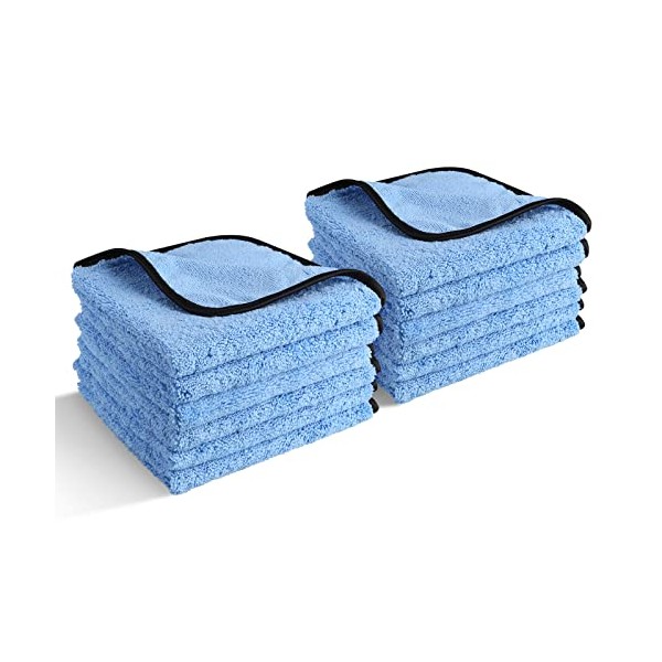 Bust-HOP Microfiber Towels for Cars, Car Drying Wash Detailing Buffing Polishing Towel with Silk Edgeless Microfiber Cloth, 16x16 in. Pack of 12