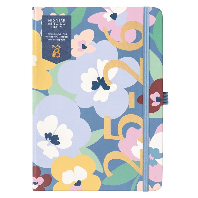 Busy B A5 Diary - Mid-Year Academic Diary - Aug 25 - Aug 26 - Floral Print - Weekly Planner with To-Do Lists, Notes, Week-to-View, 3 Pockets, Year Planner & Elastic Closure