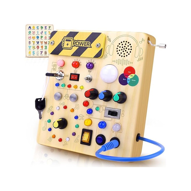 Busy Board,Montessori Toys for 1-3 Year Old Boys & Girls,Travel Educational Learning Activities for Toddlers,Sensory Toy for Kids with Autism (Busy Board v5)