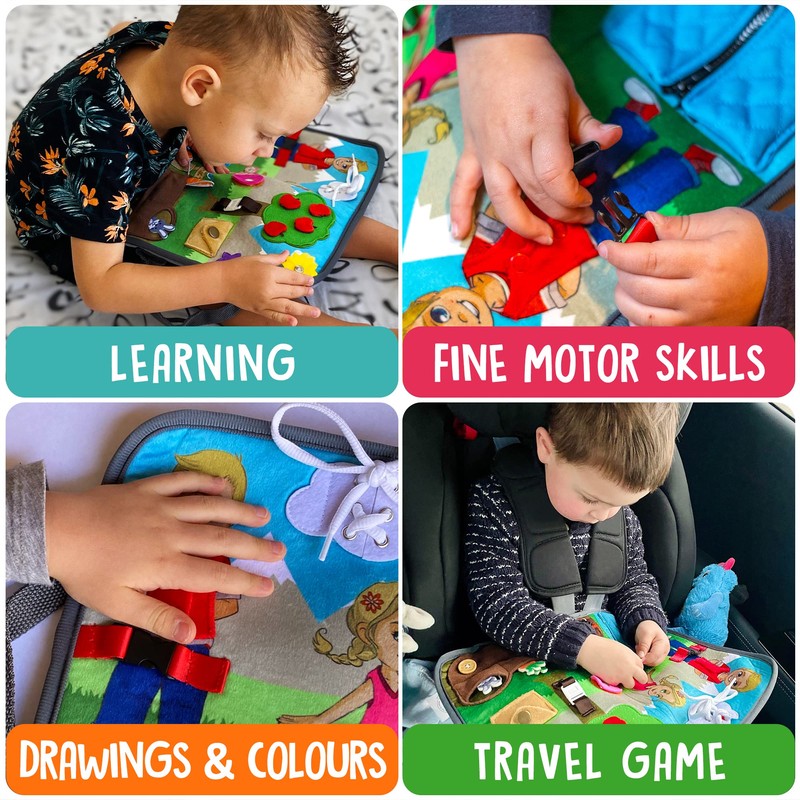 - REALISTIC TOY: A toy in conjunction with reality. Thanks to the various fasteners, laces, buttons and closures from the adult world, it allows the child to discover mechanisms they will encounter as they grow up.