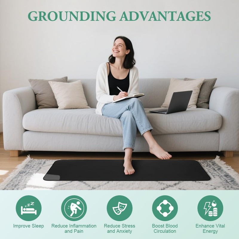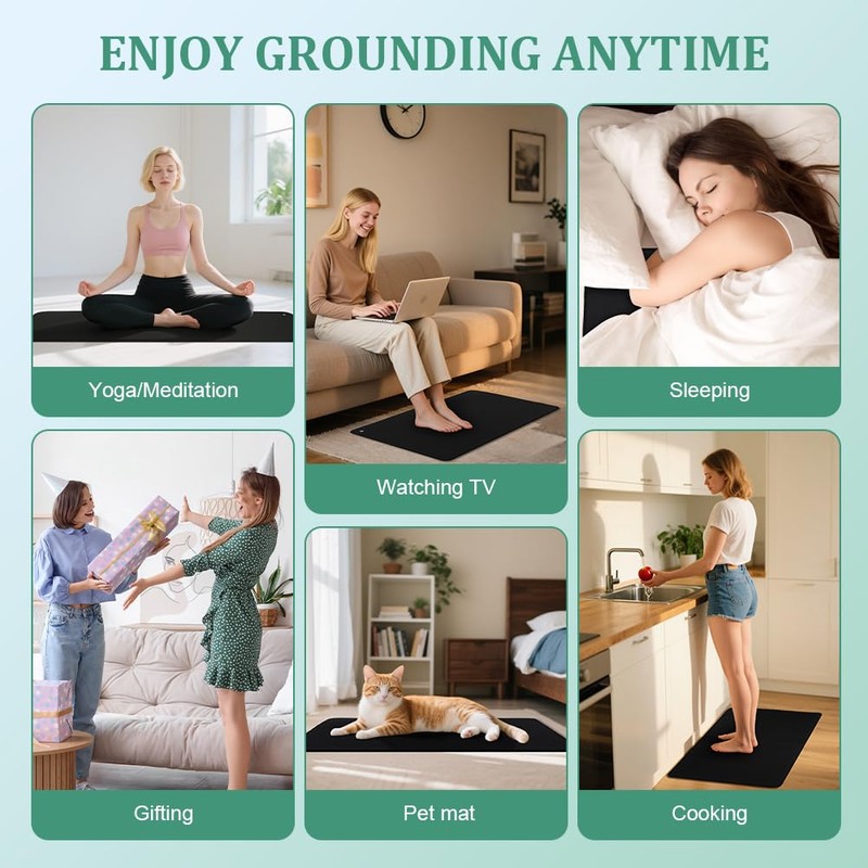 - 【DIVERSE USAGE SCENARIOS】The grounding mat is easy to store and has a wide range of uses. It can be placed on the floor in areas such as the bedroom, office, living room, study, etc. It can be used as a footstool, yoga mat to relieve stress and promote metabolism. The grounding mat can also be used as a computer mouse pad or pet mat.