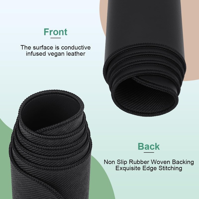 - 【HIGH-QUALITY MATERIALS】The grounding mat is made of vegan leather and conductive carbon, which is non-toxic and environmentally friendly, and can be used safely even on sensitive skin. The grounding mat has a smooth surface, combining comfort and toughness. It has good conductivity, making it easier to achieve charge balance in the body through it.