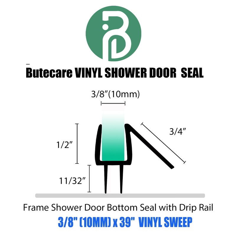 2-Pack Butecare Frameless Shower Door Bottom Seal for Glass Doors – Stop Shower Leaks and Create a Water Barrier (3/8” x 39”)