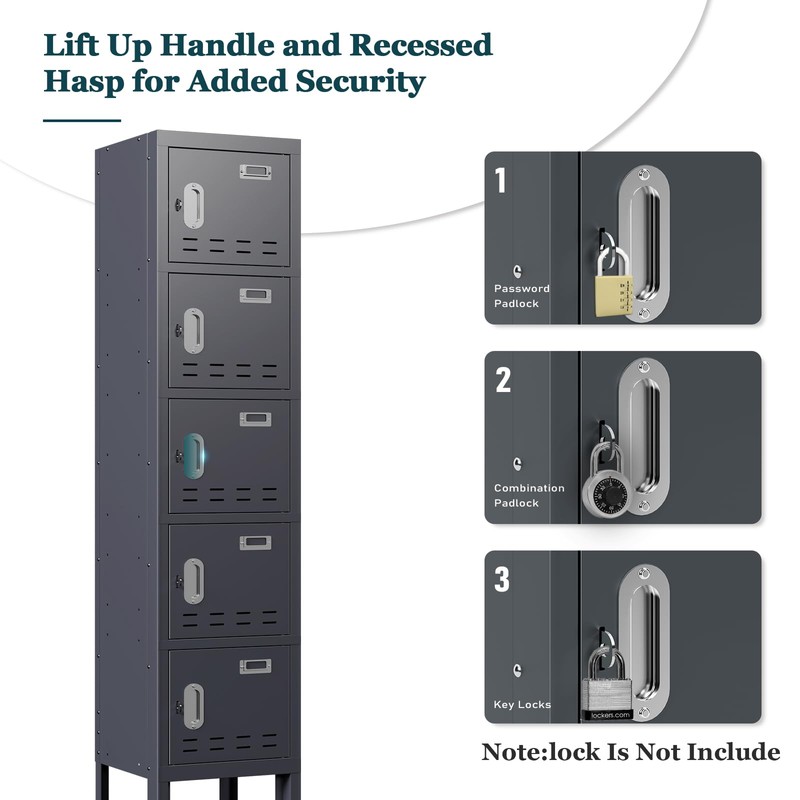 BUTISOW Metal Storage Locker with Lock & Card Slot Locker - Secure Lockable Door - Steel Locker for School, Office, Gym, Home - 66.15" H x 11.8" W x 11.8" D(5 Door, Grey)
