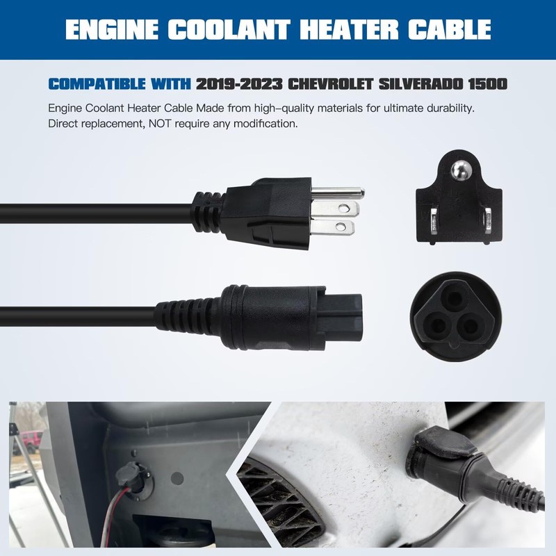 - 【Perfect Fit】 84564686 Block Heater Cable,Engine Coolant Heater Cable Compatible for 2019-2023 Chevrolet Silverado 1500/LD/LTD, for 2020-2024 G M/ Chevy Silverado 2500/3500 HD Duramax Trucks, for 19-22 Buick/ Cadillac
