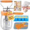 • ✅【UPGRADED DESIGN, BETTER PERFORMANCE】This improved Mason Jar Butter Churner features a tighter, easy-to-seal fit to prevent leaks and simplify use. A new inner foam ring cushions the paddles and protects the glass jar. Upgraded blades and gears now rotate effortlessly, eliminating the frustration of stuck or non-moving parts. Each gear engages perfectly with the bearings for smooth operation, and the extended handle provides a better grip for easier, more comfortable churning. Simply enjoy the process of making butter!