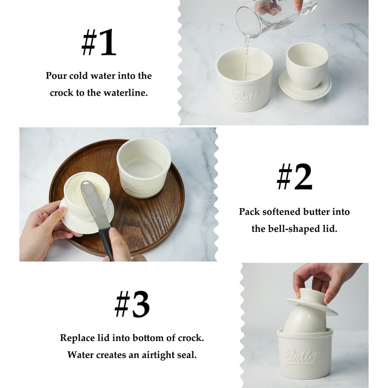 - Enjoy Soft, Fresh & Spreadable Butter Anytime: Are you tired of hard, fridge-chilled butter? Our French butter crock features a natural water seal that protects the butter from dust, insects, and bacteria while preserving its pure taste, and our butter keeper will keep your butter fresh for up to 10 days. Give your toast, waffles, or rolls with delicate creamy flavor. Enjoy the convenience of soft butter at room temperature whenever you want!