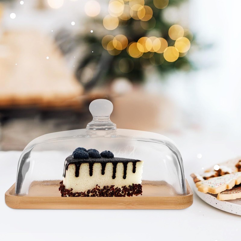 • Elegant and Natural Design: The butter holder is made of heavy-duty glass and a natural bamboo base. Natural bamboo is hygienic and for use with food. The flat bottom of the butter dish makes it easy to cut butter, especially when you want to cut thin slices, and this dish can also be used as a cheese board. The transparent lid allows you to see the amount of butter remaining, for everyday use