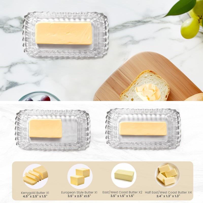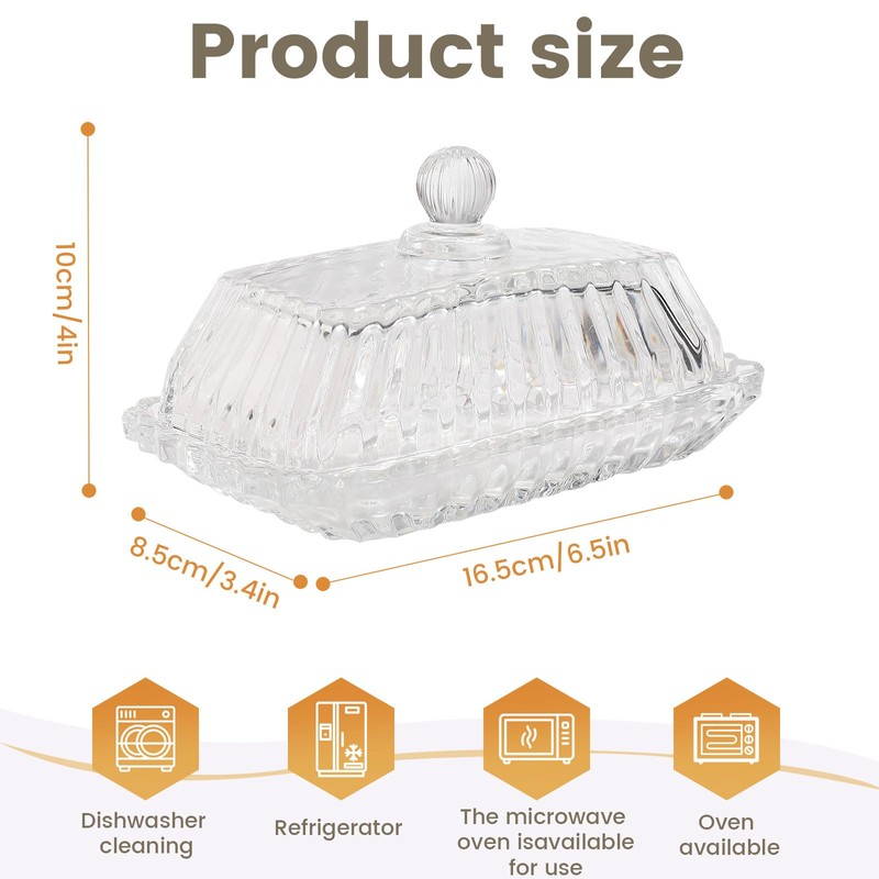 - SAFE PACKAGING & EFFORTLESS CLEANING - The butter dishes we provide are carefully packaged with innovative anti-collision design, ensuring your butter dish arrives in perfect condition. Plus, in terms of cleaning, dishwasher safe for your convenience, this protector makes cleaning a breeze, allowing you to effortlessly remove grease and stains from the glass surface.
