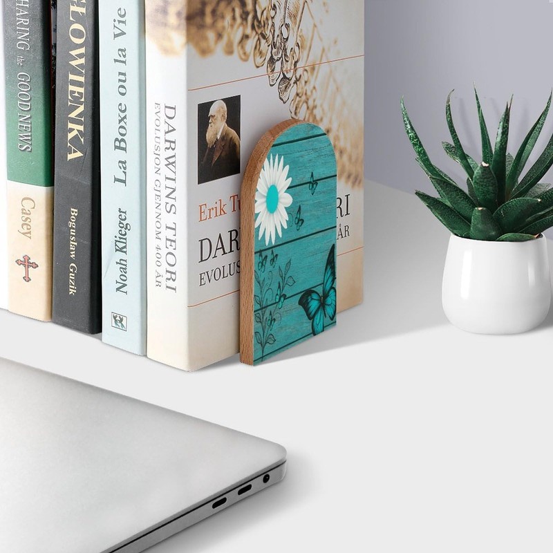 Butterflies Sunflower in Wooden Book Ends Decorative Wood Bookends for Shelves Kids Room Desk Home Office Book Stoppers for Magazines,Books, DVDs, 1 Pair/2 Pieces(5x3.1 in)