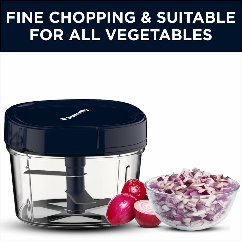 Butterfly 2.5 Cups Premium Plastic Manual Food Chopper, Hand Pull String Onion Vegetable Mincer Dishwasher Safe, 600ml, Blue