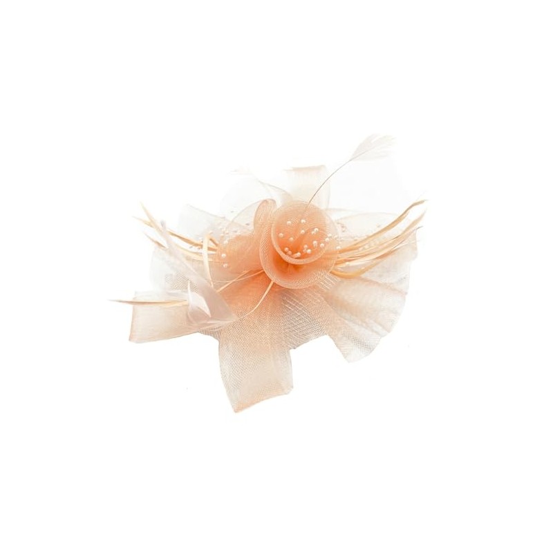 Butterfly Black Feather Wedding Ascot Fascinator on Comb Hat Hair Accessories (Peach)
