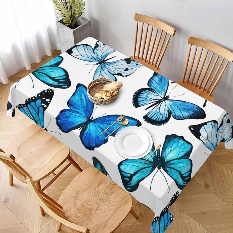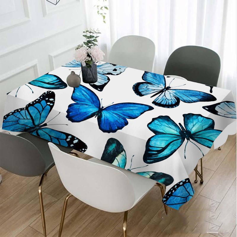Butterfly Blue Tablecloth 52 x 70 Inch Rectangular Animals Exquisite Wings Fantasy Oblong Table Cloth Kitchen Table Decorations for Home Dinner Party