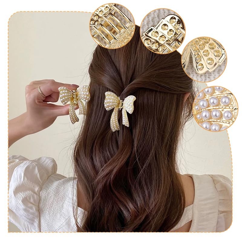 - Pearl Butterfly Hair Claw Clips for Women Girls Size: Our womens pearl claw hair clips is about 1.97*2.36 inches, you can not only use it as pearl wedding hair accessories for bride bridal, womens butterfly hair accessories prom or womens performance accessories with bowknot, but also you can use it as girls graduation gifts for daughter sister bestie